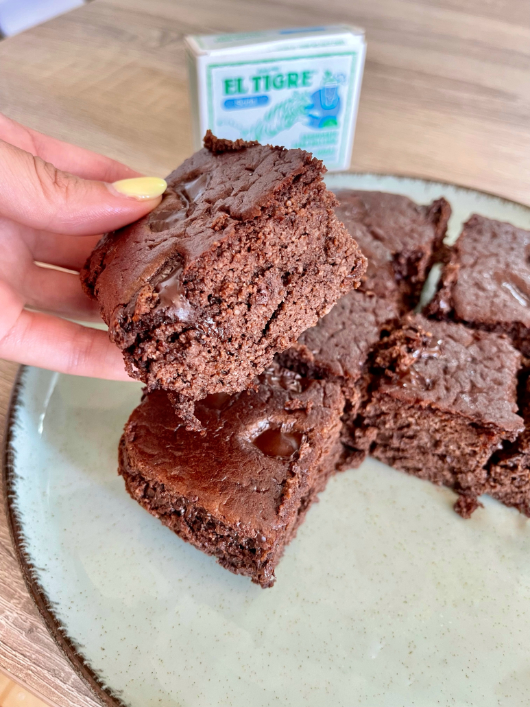 Hoy compartimos con vosotros una receta sencilla de bizcocho de chocolate, sin azúcar porque lo endulzamos con plátanos maduros, es una receta sin gluten pero se puede adaptar utilizando harina común.