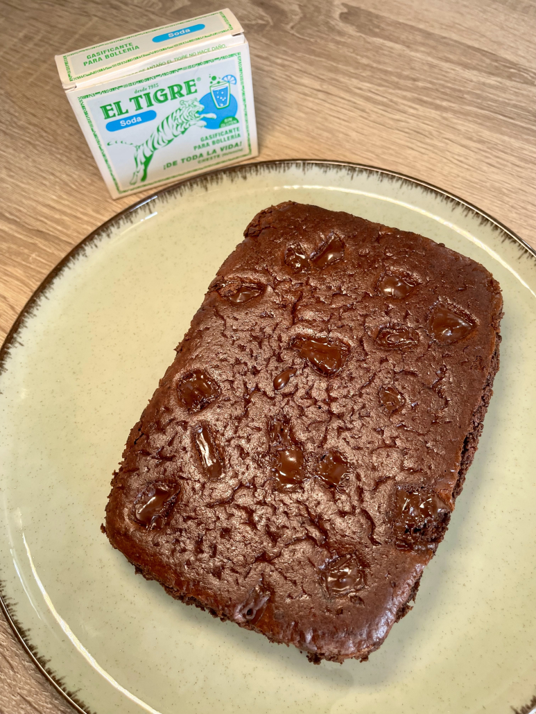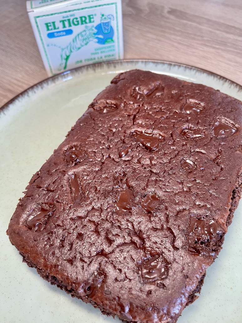 Añade los ingredientes secos, primero el cacao y la harina y luego la soda El Tigre.