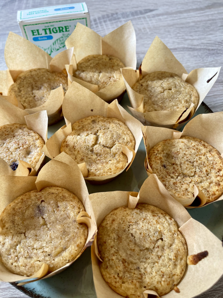 Magdalenas SIN GLUTEN ni AZÚCARES de plátano y arándanos